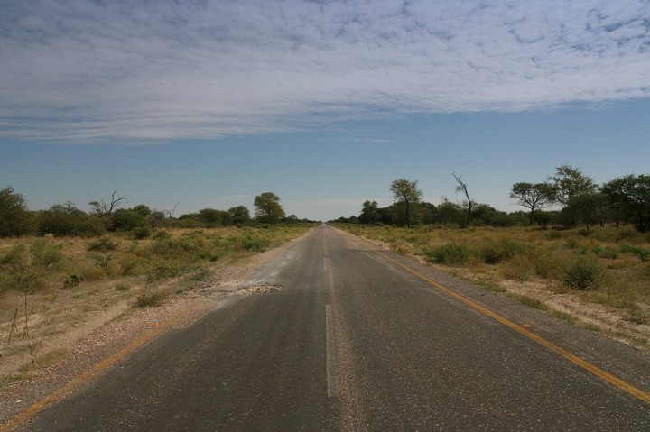 | Auf dem Weg zu den Tsodilo Hills: Straße westlich des Okavango Deltas. | |