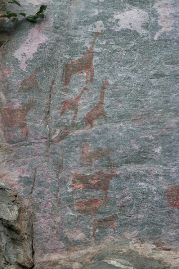 | Tsodilo Hills: Das Bekannteste hier sind die Felsmalereien, manchmal an Felsen, die man ohne aufwendiges Gerüst garnicht erreichen kann - hatten die damals vielleicht Hubschrauber, Herr Däniken? | |