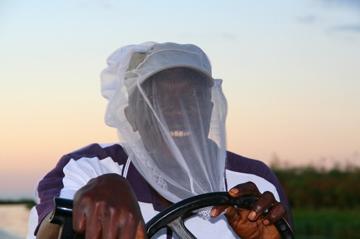 | rasante Fahrt zurück zum Camp: unser Guide schützt sein Gesicht vor allem, was da nach der Dämmerung so rumfliegt. Wir hatten kein Netz - hätten wir unsere Münder offen gelassen, hätten wir kein Abendessen gebraucht. | |