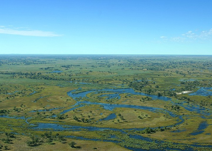 | Auf dem Flug - eine Wasserwelt breitet sich unter uns aus | |